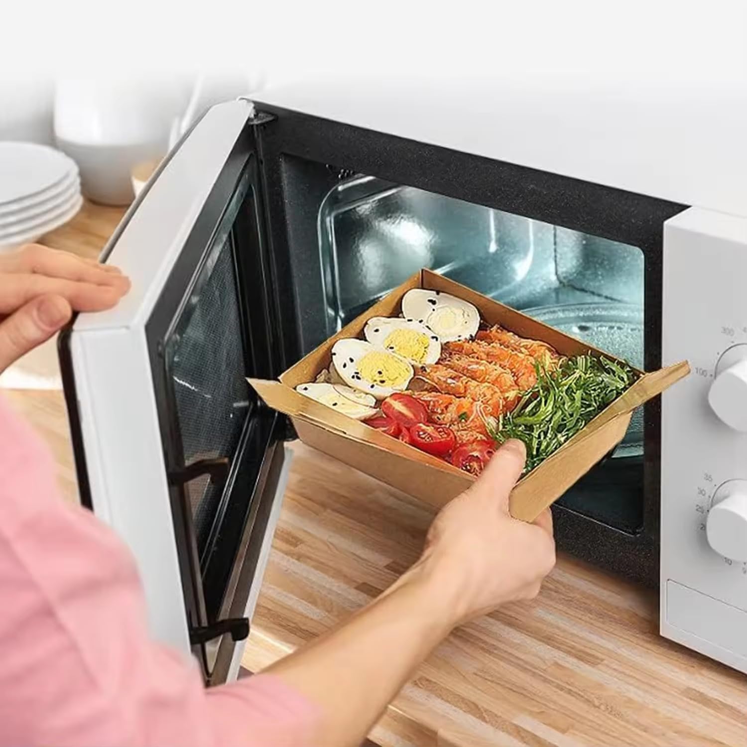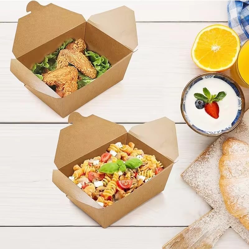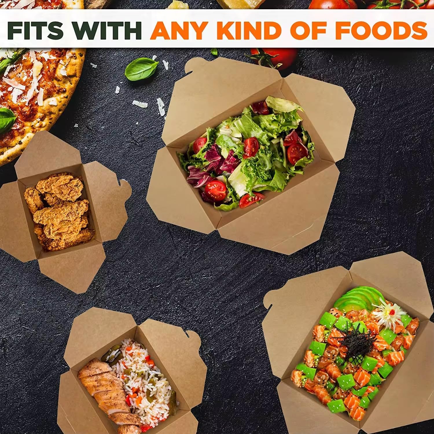 - Professional Attractive Kraft Finish: The kraft paper finish not only enhances the visual appeal of the container but also lends a professional touch to your food presentation. The natural kraft color complements a variety of food types and reflects a commitment to quality and style in every serving.